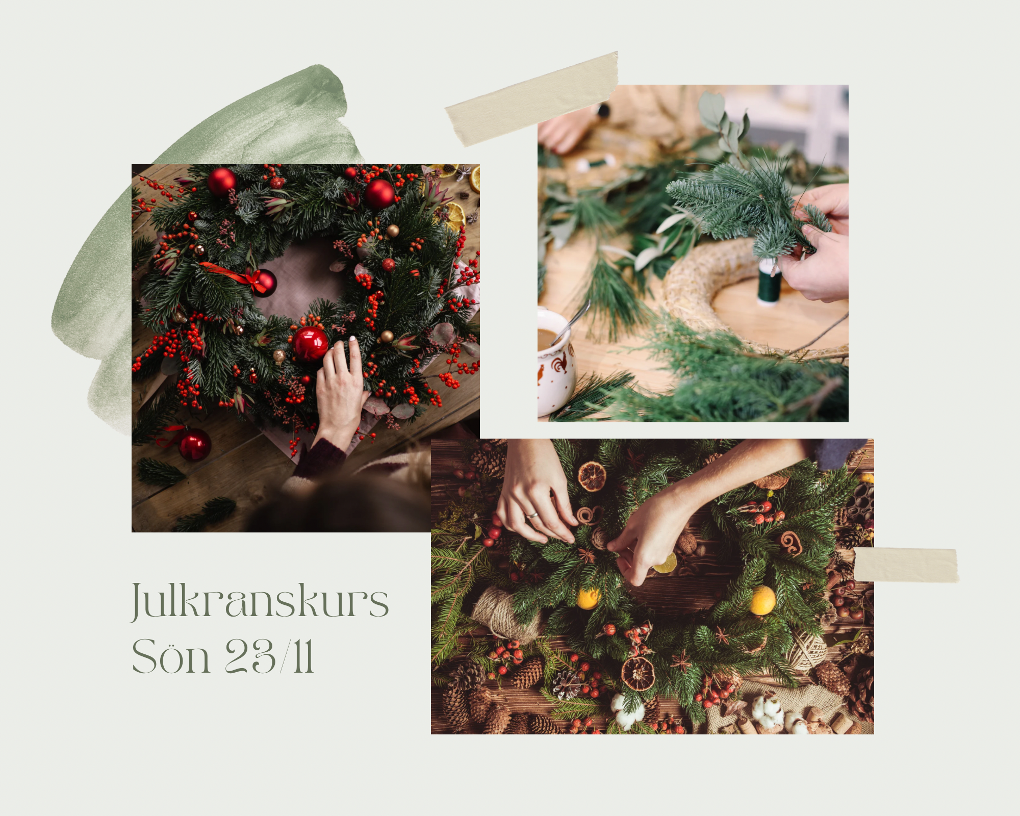 🎄🌟Jag visar tekniker, delar inspiration och finns där som stöd medan du skapar din alldeles egna julkrans. Allt material och en liten julfika ingår, så du kan bara komma som du är och njuta av stunden.